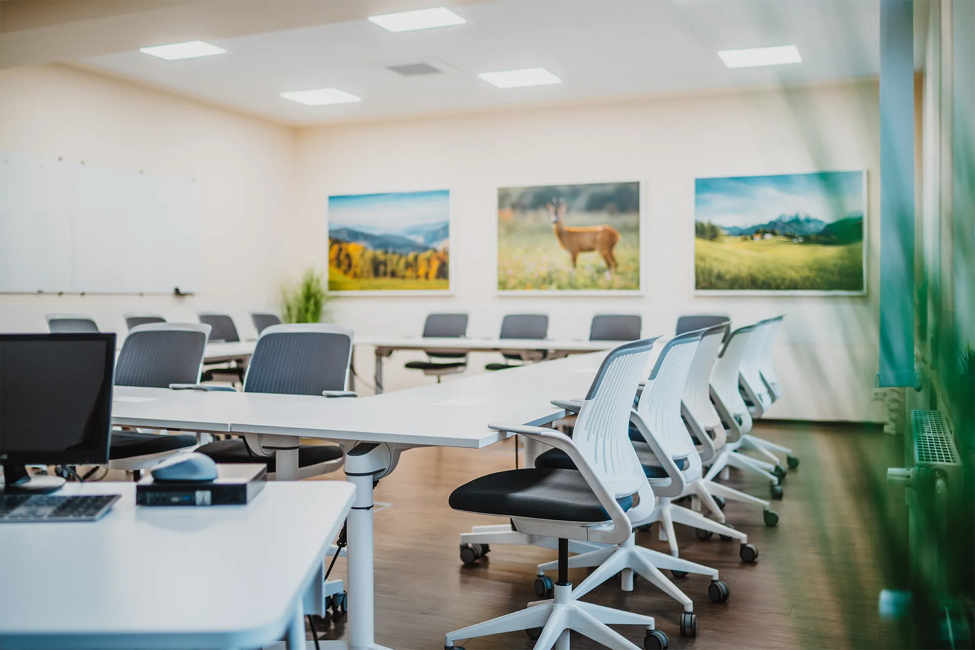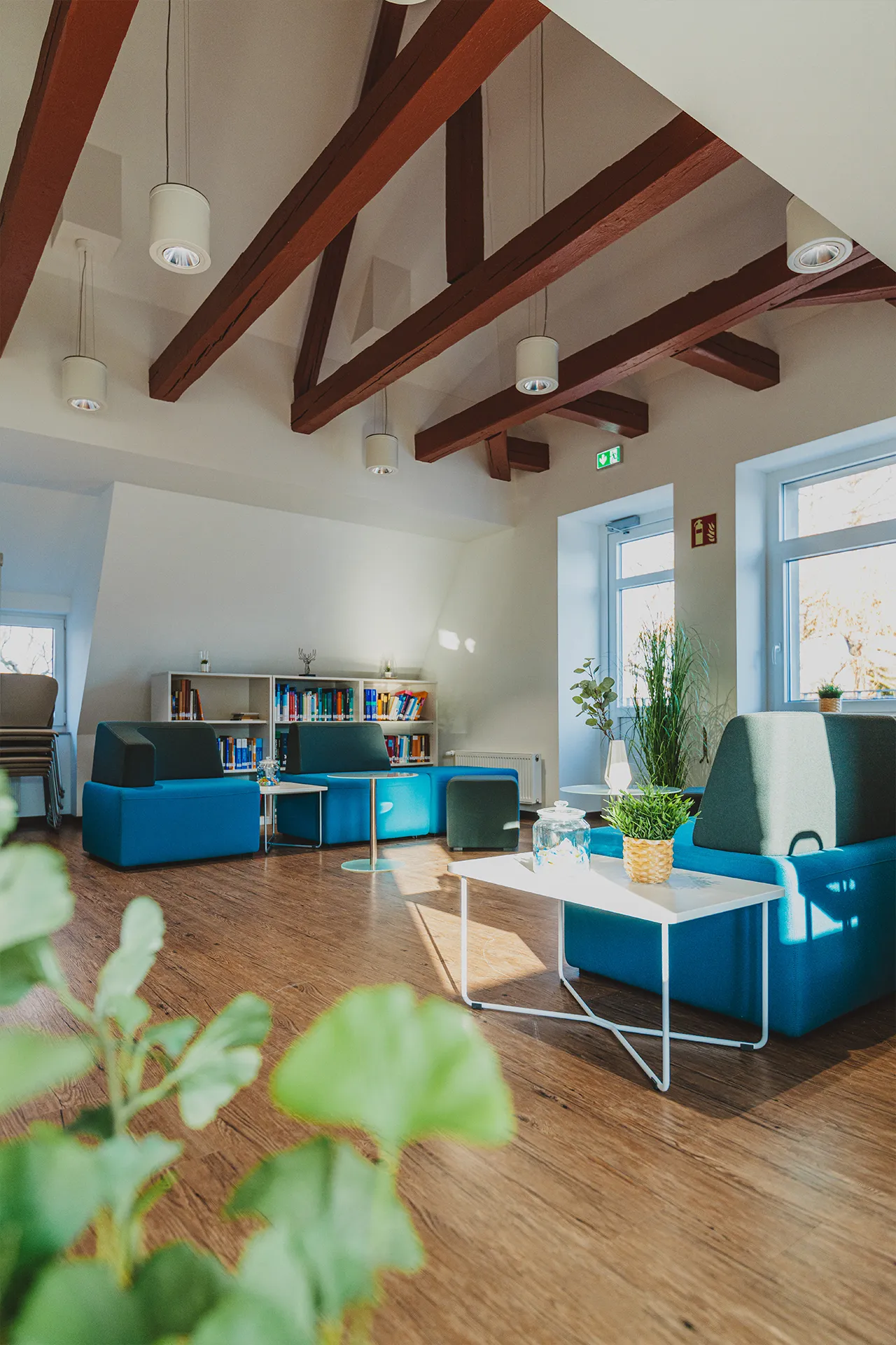Mit der umfassenden Sanierung im Jahr 2020 wurden die räumlichen Bedingungen der Psychiatrie Akademie grundlegend neu gestaltet. Entstanden sind moderne, funktionale Lernräume mit flexibler Ausstattung und aktueller Medientechnik. Unsere Galerie vermittelt einen ersten Eindruck davon, wie wir Fort- und Weiterbildung organisieren – in einer Umgebung, die professionelles Arbeiten ebenso unterstützt wie kollegialen Austausch.